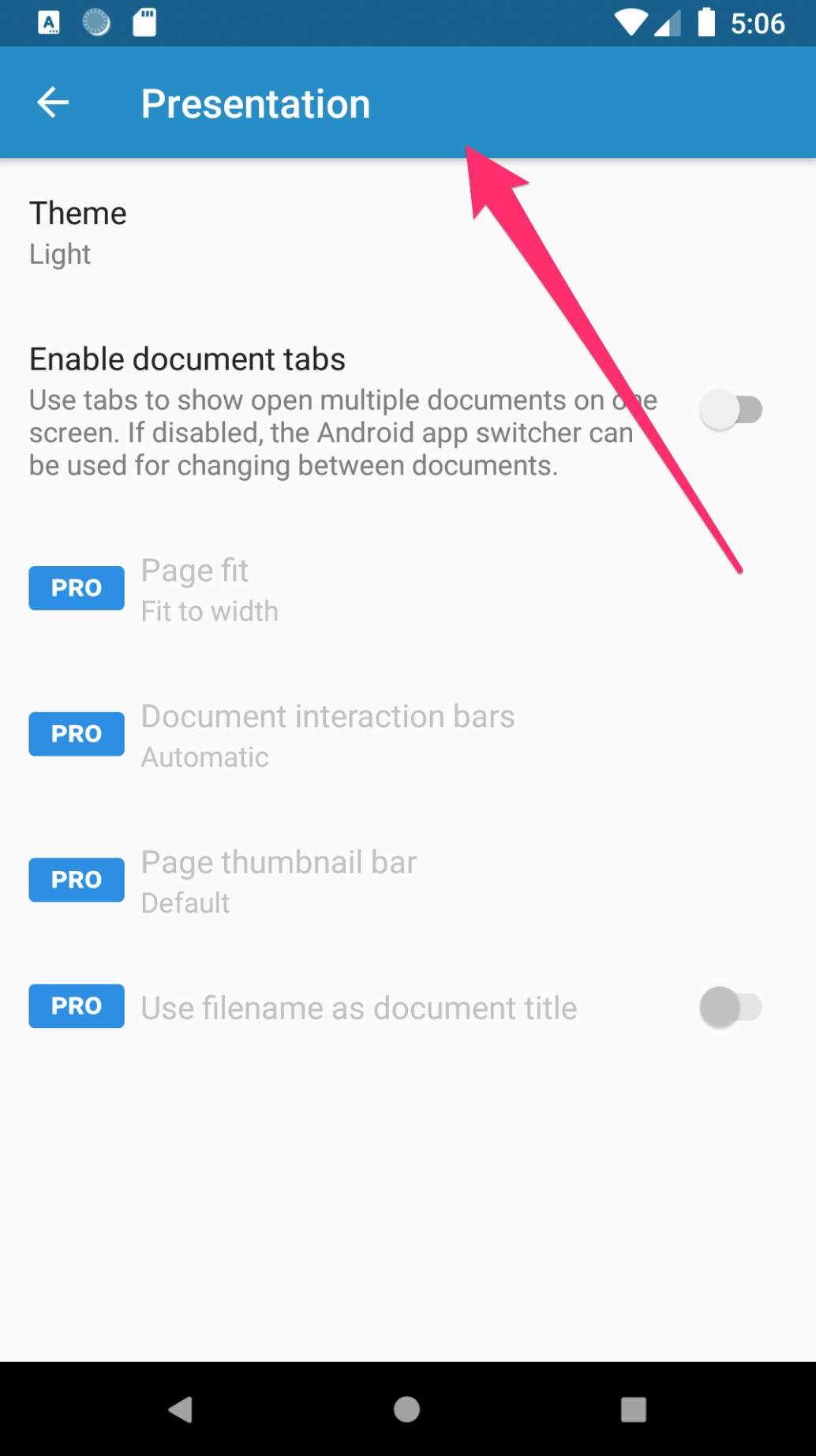 In our settings activity, we are using the default SYSTEM_UI_FLAG_VISIBLE, which implies having a solid status bar(opens in a new tab).