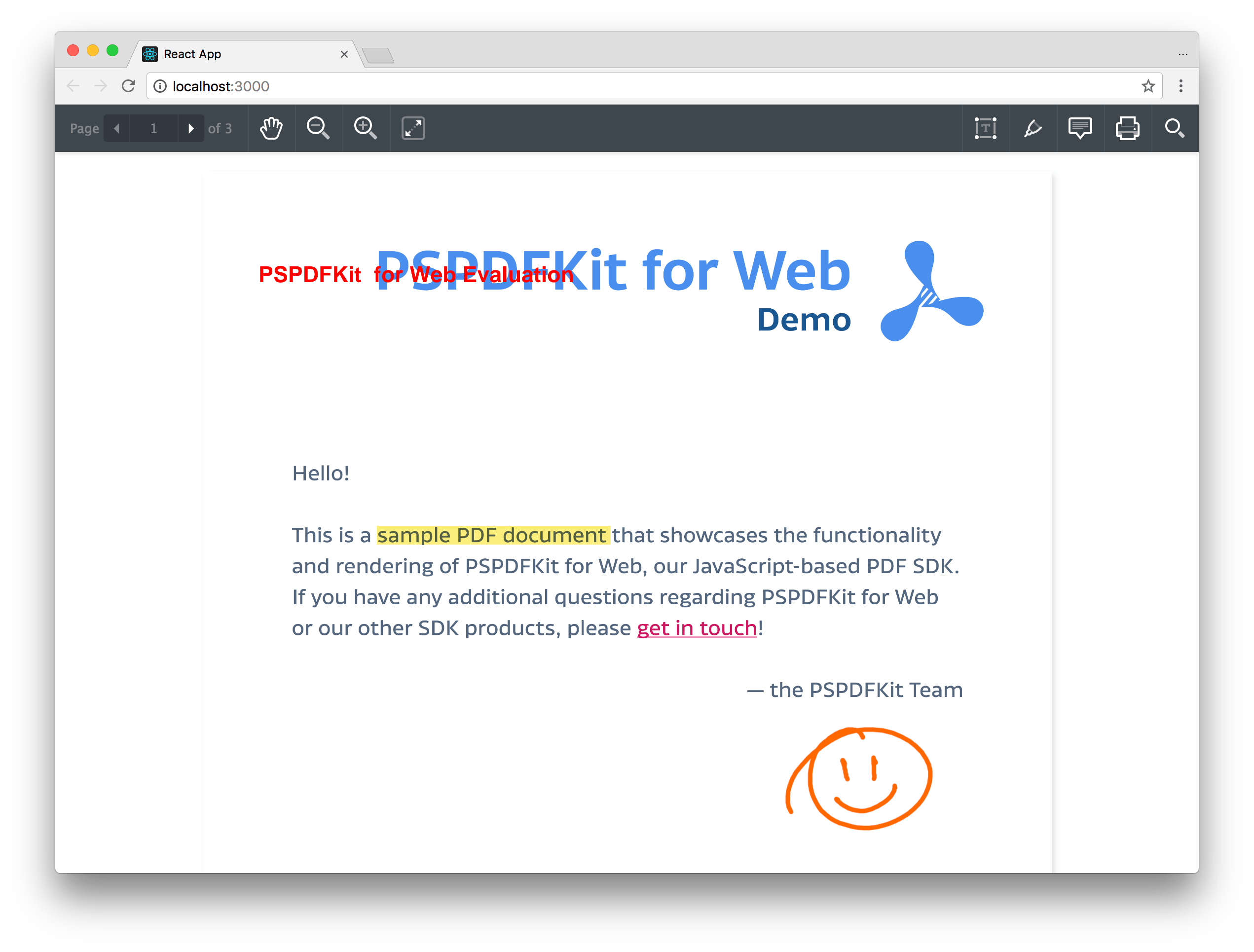 This tutorial will show you how to add PSPDFKit for Web to a React application to display a fully interactive PDF in the browser. Here’s what we’re going to build: