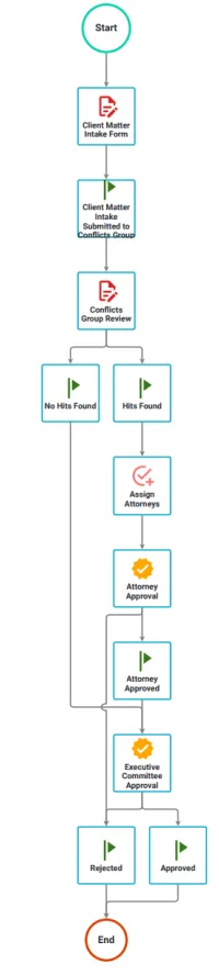 That is why we have a prebuilt solution for this use case. Nutrient Workflow's Client Matter Intake Process App(opens in a new tab) is prebuilt and ready for your legal team. With the form and process already designed, you are able to input your recipients and assignments and begin your intake process faster and more efficiently. Here is the form and process that has been built out by our team: