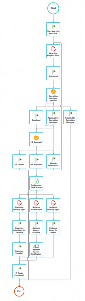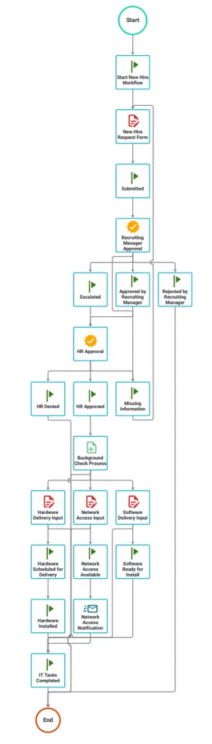 Many customers use Nutrient Workflow to help with the new hire process and onboarding of new employees. This is a fairly typical example of how an automated new hire process can work.