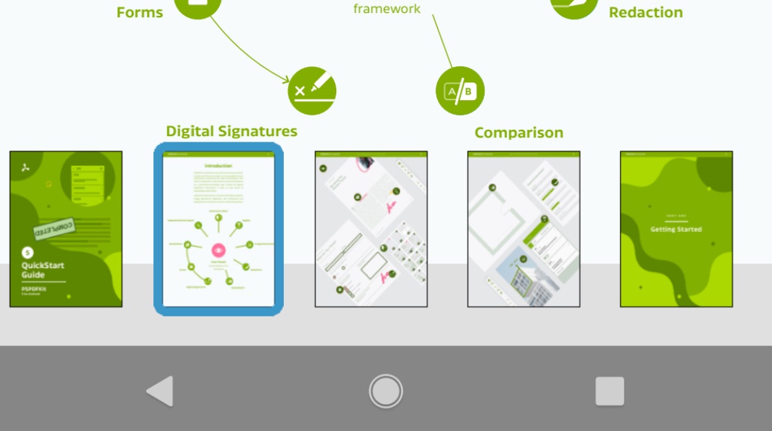 The thumbnail bar is the component found on the bottom of our PdfActivity by default, or as a standalone view named PdfThumbnailBar.