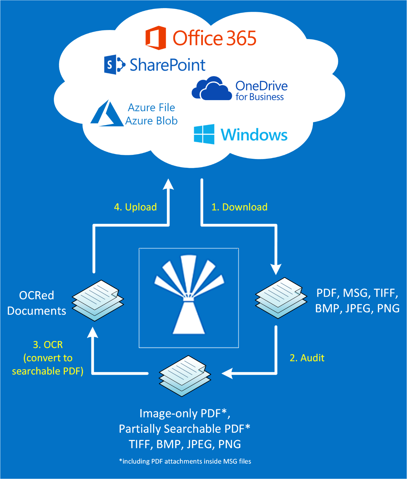 Document Searchability currently supports TIFF, BMP, JPG, PNG and PDF documents (including PDF attachments inside MSG files) as input. As a result, candidate documents will always be one of these formats.