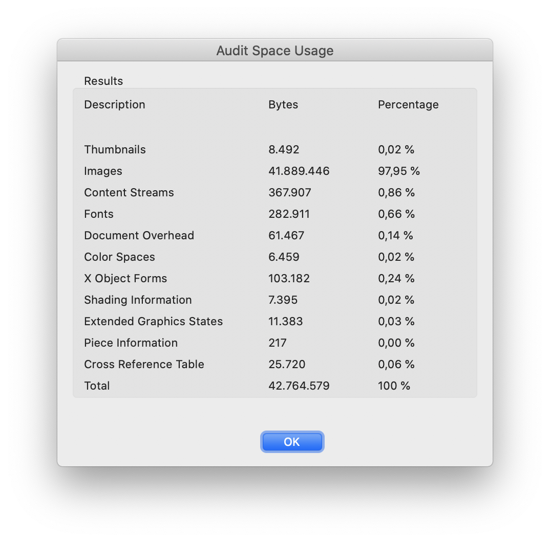 “Why is this PDF so large?” is a common question, and it can often be difficult to understand what is taking up space in a PDF. This guide covers how to audit the space usage in a PDF and gives suggestions of what to do about it.
