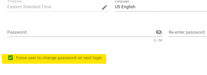 Next, click “Users” on the left side bar navigation menu and choose the user you would like to edit using the pencil icon next to their name. Once in their profile, check the box that says “Force user to change password on next login” and make sure to save at the bottom of the page.