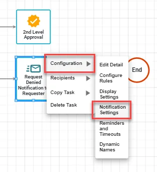 In the above example, a General Notification task has been added to the process to execute after the Accepted milestone is submitted. In a scenario like this, it is simply notifying the requester that the contract was accepted.