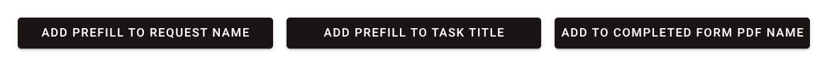 By selecting ’Add Prefill To Request Name ’, ’Add Prefill To Task Title ’, or ’Add To Completed Form PDF Name’ you will see that the Dynamic Name will be applied to the option for: