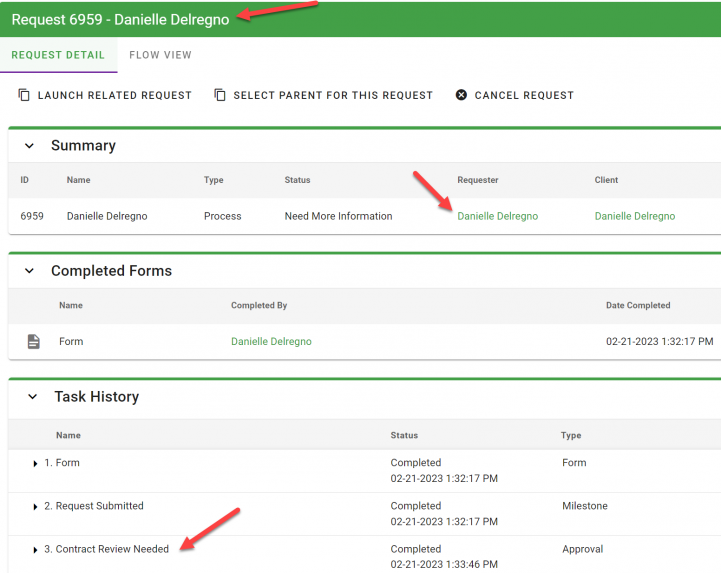 …and we can see that the Request Name is dynamically named after the Requester’s Name when the task is completed.