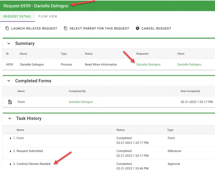 ...and we can see that the Request Name is dynamically named after the Requester's Name when the task is completed.