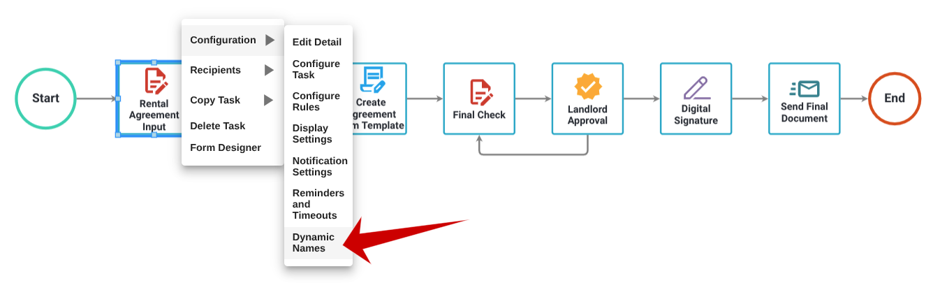 Here, we can see that the Approval task is dynamically named ‘Contract Review Needed ’ when the task was started:
