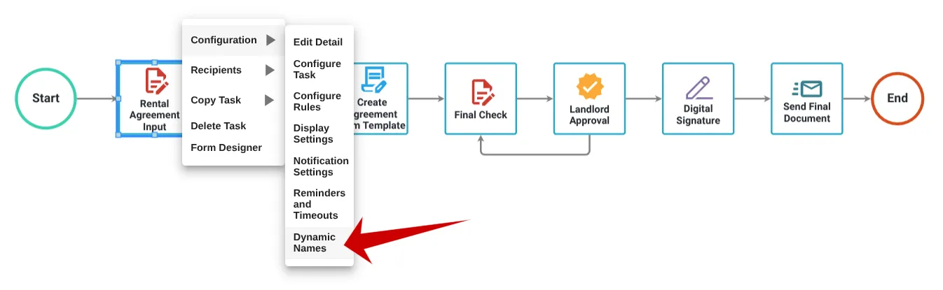When you select Dynamic Names, you will be presented with the following to define dynamic names based on the task: