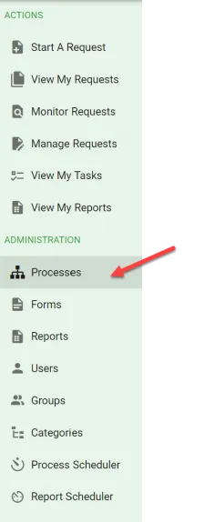 To access the process library, select Administration > Processes from the left-hand menu.