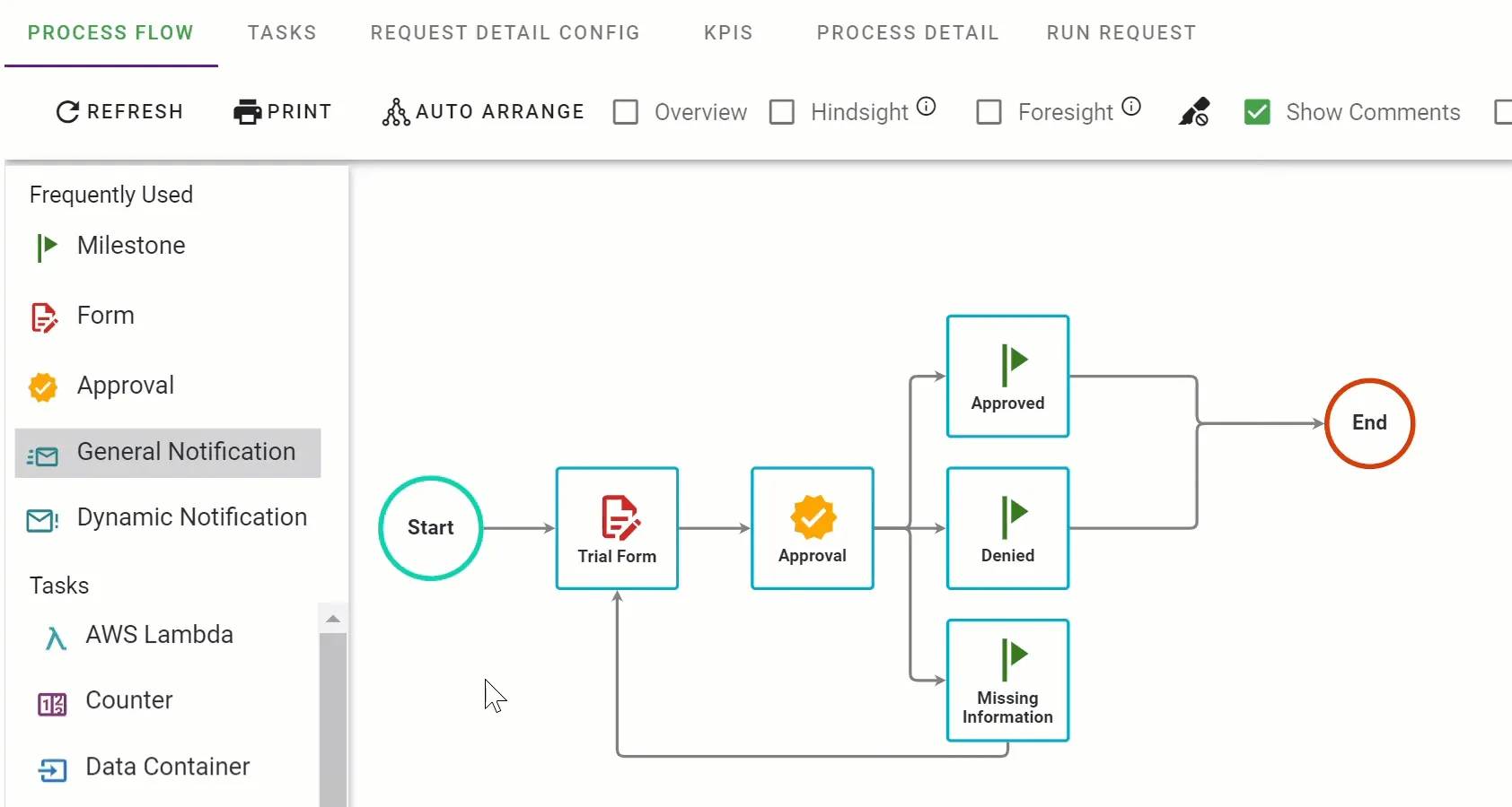 The Process Builder is the primary tool for both viewing process structure and adding/configuring any task in your process. In this section we will discuss: