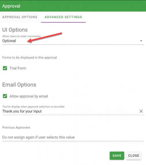When configuring an Approval Task, you have the option to allow the user completing the Approval Task to add comments to the task. Users can add comments to the task by selecting the task from within their Open Tasks when logged into the portal OR if you allow the users to approve by email, they can add comments in the browser confirmation page after they select an option from within the email notification.