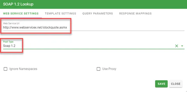 | Post Type | Http Post, Htpp Get, Soap 1.1, Soap 1.2 | Yes | Choose your Post Type based on the requirements of the web service you are connecting to. |