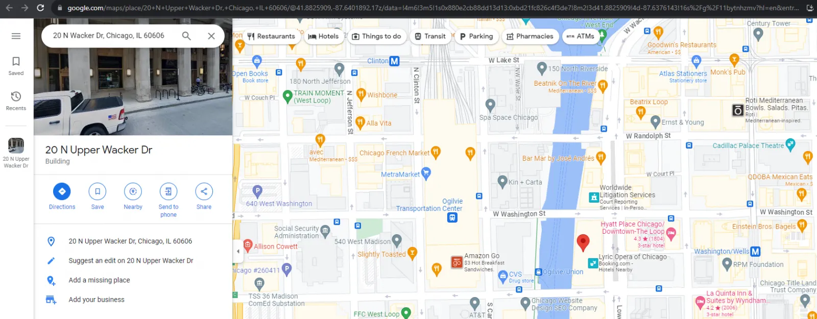 In this example, when the user submits their Address Information Form and enters 20 N Wacker Dr, Chicago, IL 60606, the process will automatically open the following window for them: