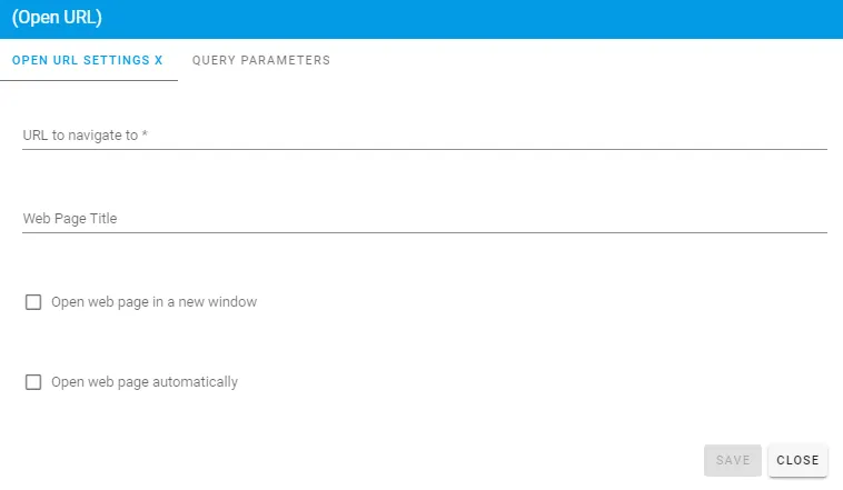 To configure the Open URL task, you must define the following, located on the Open URL Settings tab: