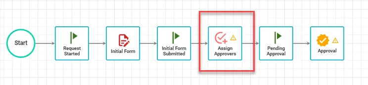 In the example above, an individual will be selected to complete the Task Assigner task (here named "Assign Approvers") and will be able to search for anyone in the system to complete a subsequent task, which in this case, is an Approval Task.