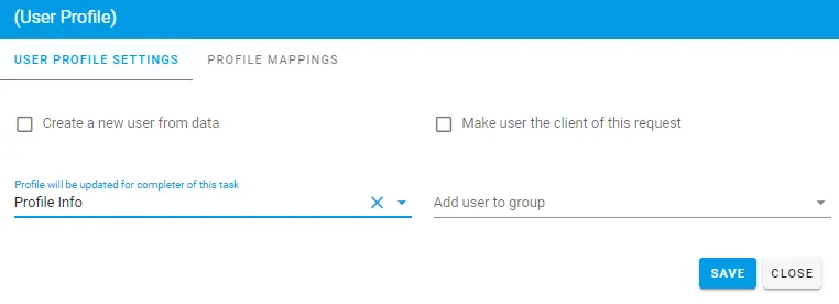 | Profile will be updated for completer of this task | Select List | No | The completer of the chosen task will be the user whose profile is updated (if not creating a new user) |