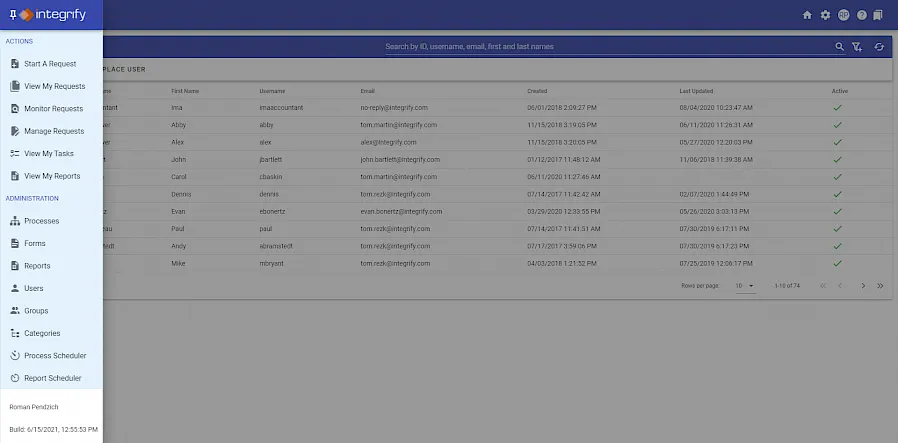 For example, if a user needs to request time off for vacation he/she will navigate to the Human Resources category and select the Vacation Request process to start.