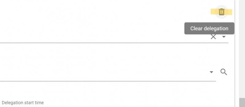 To remove a Delegation, go back into the user profile where you completed it. Next, click on the trash can next to the Delegation to delete it.