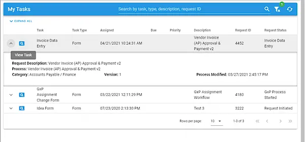 A task is an action required of you or another employee, and it’s associated with a request process that has been started. Your task could be to complete a form, provide an approval, etc.