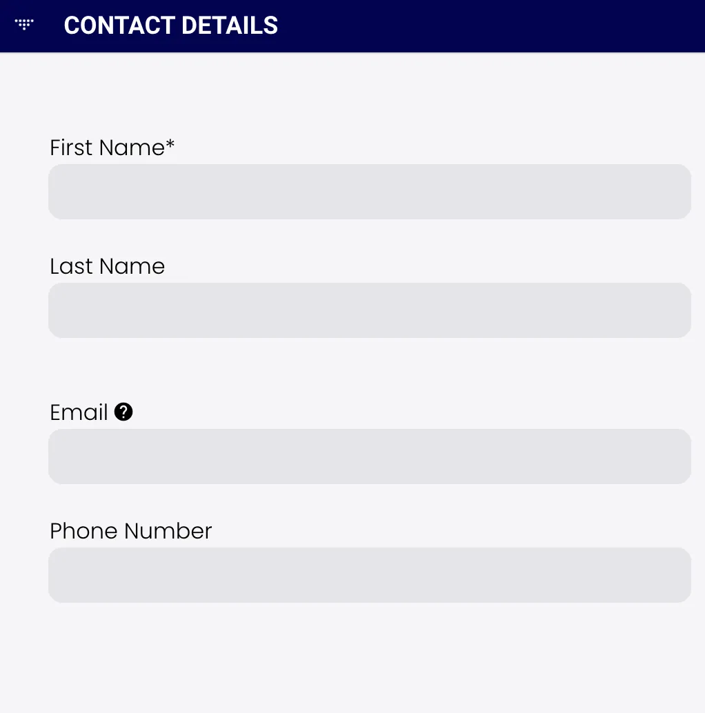 form{font-family: 'Poppins', sans-serif !important;font-size: 16px !important;}int-form-section-dropzone .sectionOutline {border: none;}form, md-card.md-default-theme, md-card{background-color: #F5F5F7 !important;color: #000 !important;}/* Hidden Elements */.theme-color-bar {display: none !important;}/* Layout */.title-container {background: #EDEDF3 !important;}.title {font-size: 24px !important;padding-left: 10px !important;font-weight: bold !important;text-transform: uppercase !important;}.wrapper {padding: 50px 0 !important;}md-input-container {margin-bottom: 30px !important;}/* Fields */int-form-section-dropzone #expandSection .expand-bar .title, .int-label, input {color: #000 !important;font-size: 16px !important;}input,textarea,.signaturePadCanvas {margin: 0 0 10px 0 !important;}.md-checked .md-icon:after {border-color: #000 !important;}.md-input {color: #000 !important;border-bottom: 1px solid #E5E5EB !important;background-color: #E5E5EB !important;border-radius: 10px !important;min-height: 40px !important;padding: 10px !important;}md-input-container>md-select {color: #000 !important;border-bottom: 1px solid #E5E5EB !important;background-color: #E5E5EB !important;border-radius: 10px !important;min-height: 40px !important;padding-left: 10px !important;}.md-select-value>span:not(.md-select-icon) .md-text {color: #000 !important;}.md-select-value {border: none !important;}.pikadayDatePicker {color: #000 !important;border: 1px solid #E5E5EB !important;background-color: #E5E5EB !important;border-radius: 10px !important;padding: 0px !important;}int-question-radio-button md-radio-button {color: #000 !important;font-size: 16px !important;}.md-icon {background: #c9c9c9 !important;border: 1px inset #c9c9c9 !important;}.md-off {background: #F5F5F7 !important;border-color: #c9c9c9 !important;}.md-on {color: #141E30 !important;background-color: #000 !important;}int-question-signature .readonly-signature {border: none !important;}.md-button{background-color: #000 !important;color: #fff !important;}.signButton{padding-left: 20px;padding-right: 20px;margin-left: 20px !important;}.buttons\_bar .md-button {background-color: #000 !important;color: #fff !important;}/* Icons */.buttons_bar .material-icons {color: #fff !important;}.toggle-icon {