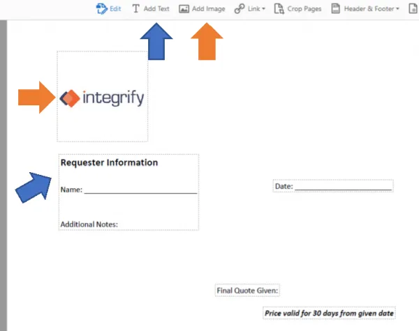 Add text and images to your form for the required fields you’d like to include in your PDF.