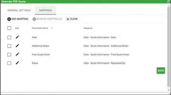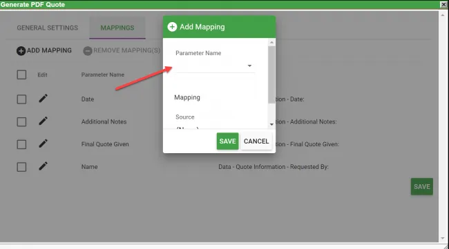 First, click Add Mapping. Under Parameter Name, see all the fields you created on your PDF in Adobe.