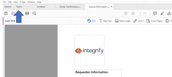After all of your required fields are included on the document, click Tools in the top-left corner of your Acrobat window.