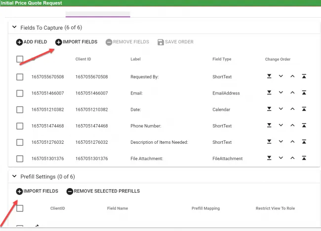If any field names on the form are changed, you’ll have to hover over Form Task > Configuration > Configure Task > Advanced Settings > Import Fields under Fields to Capture and Prefill Settings. Then go back to the mappings on the PDF generator and add the field again.