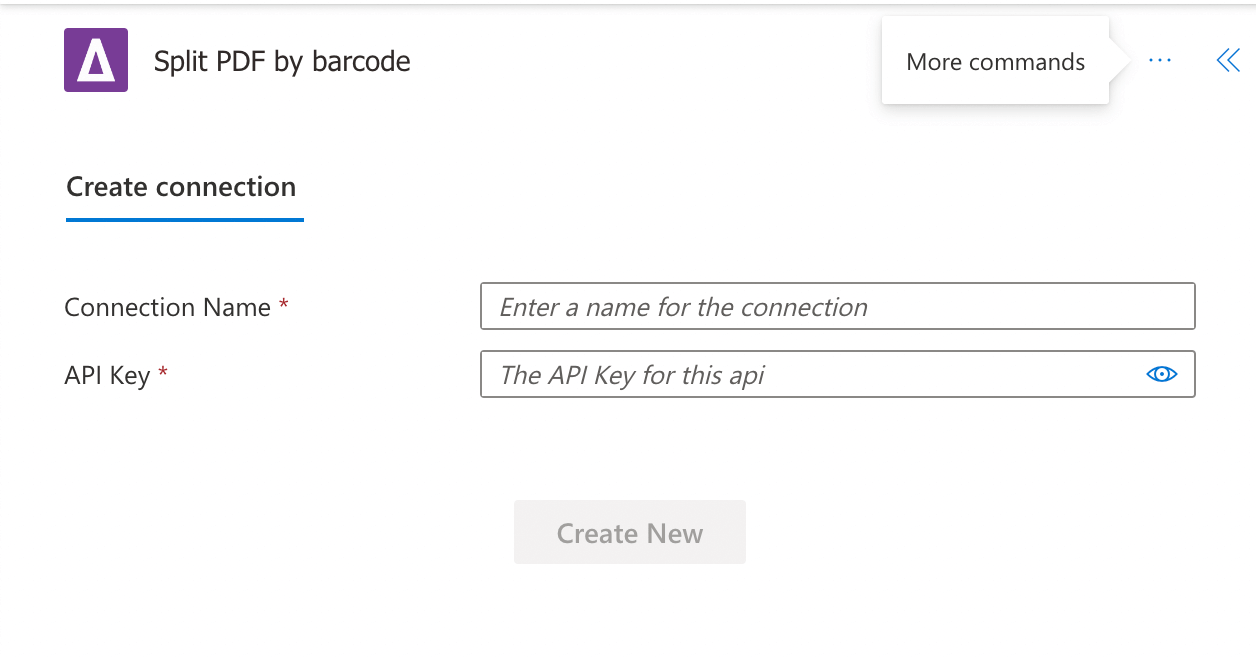 In the next step, fill in the Connection Name and API Key fields. Give your connection a name, and use the primary key that was generated when you signed up for PDF Connector.