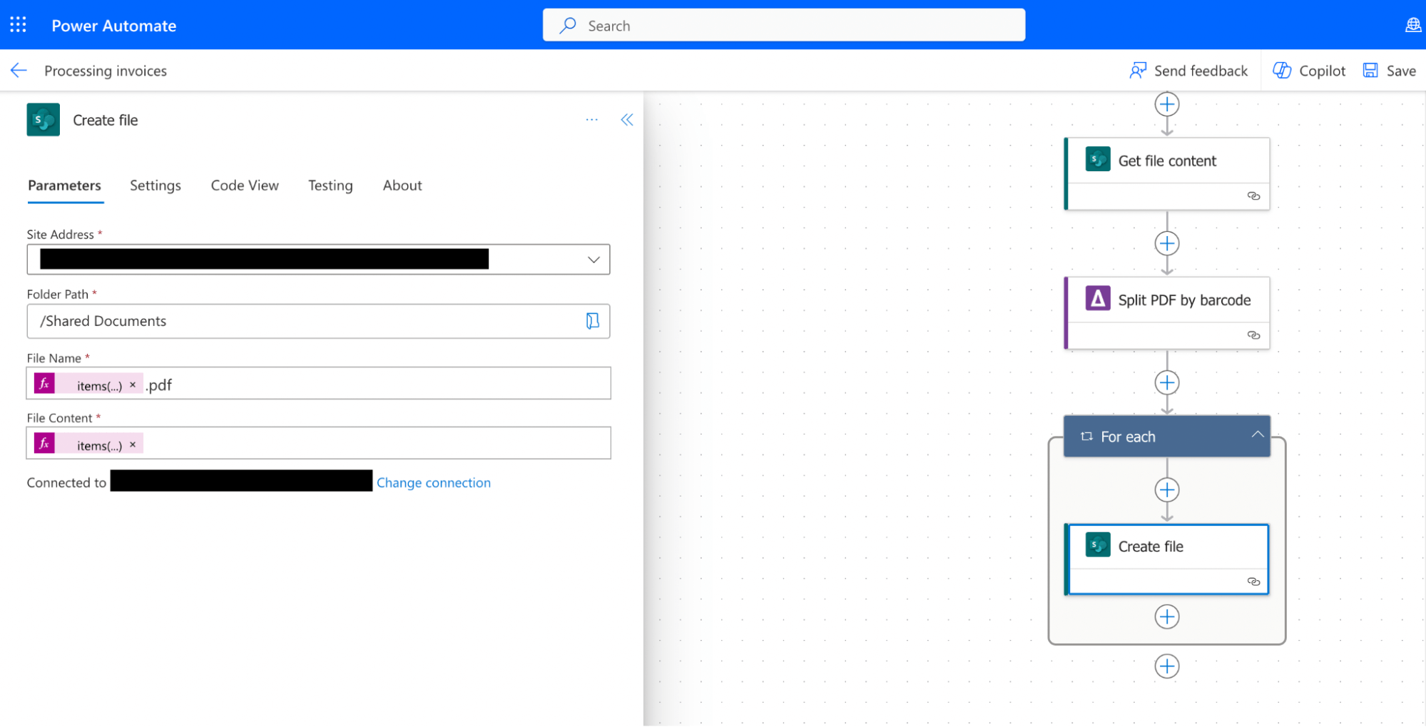 Click Save and run the Power Automate workflow to execute the Split PDF by barcode action.