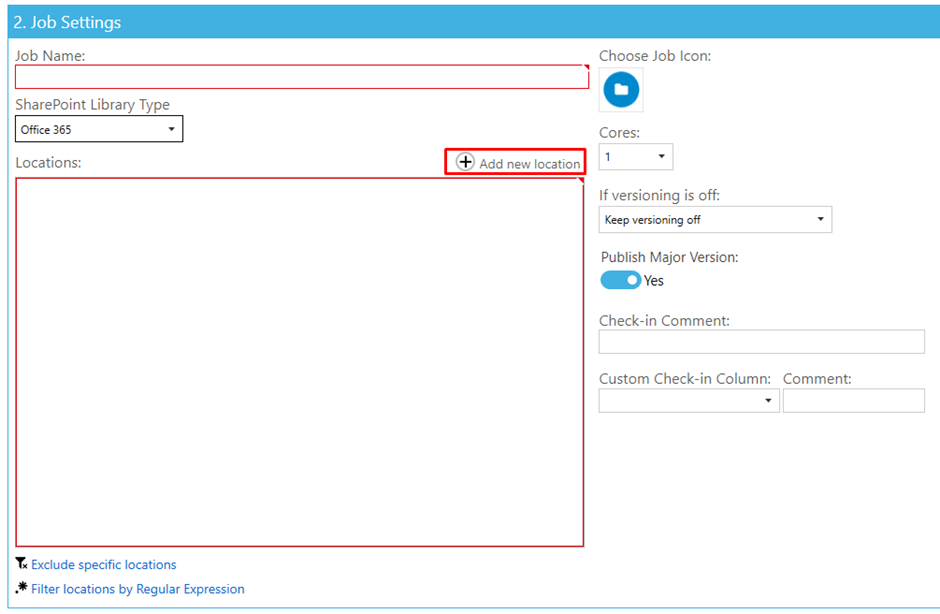 To start, simply enter a Job Name, select your Library Type and then click “Add new location”.
