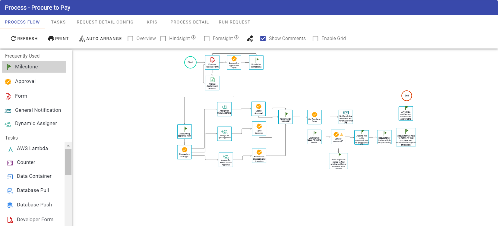 Another process that Caregility has built that we’d like to highlight is their “Produce to Pay” process. Below are two images, one of them being the process built out how it was handled before Nutrient Workflow – which had about 40 steps. But they could heavily condense these older processes into a much simpler version thanks to automation.