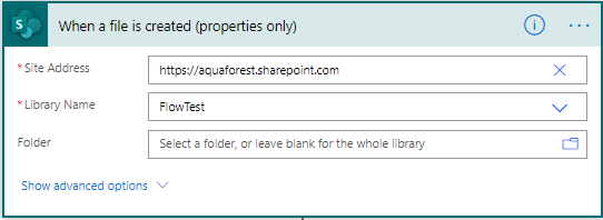 - Select your Trigger “When a file is created in a folder”