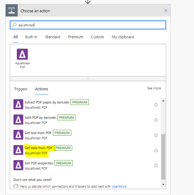 Add an “Aquaforest -Get Data from PDF” Step