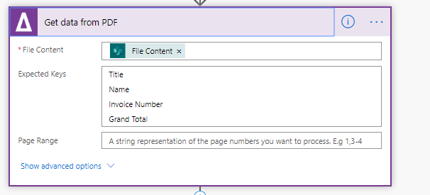 - Enter the values from Get Data from PDF Step