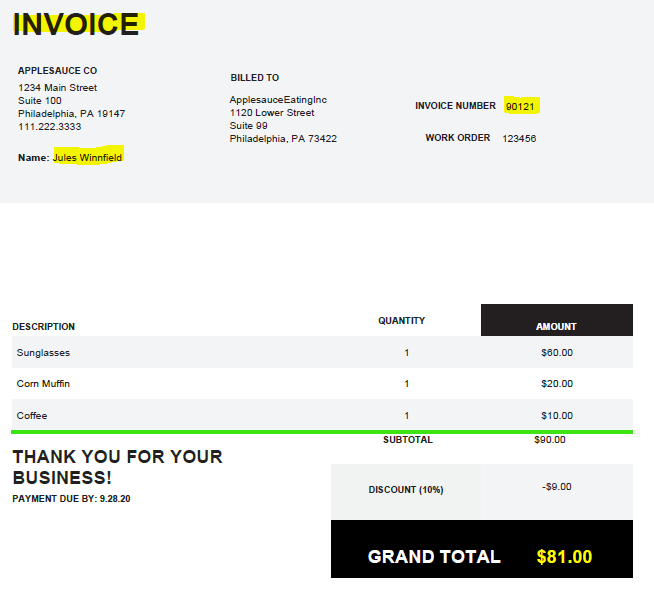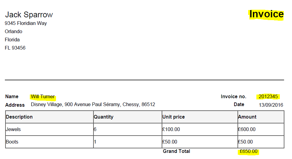 - Expected Keys: Title, Name, Invoice Number & Grand Total