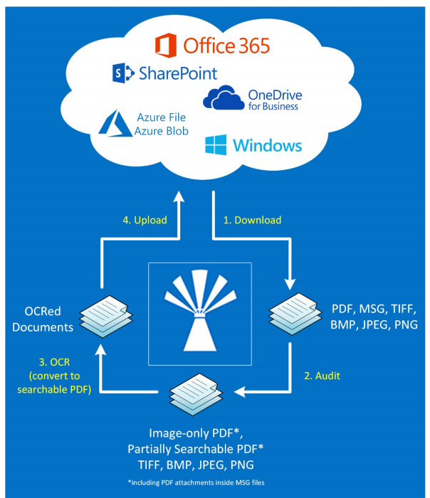 Unsearchable documents will be consistently added to your SharePoint or O365, meaning that there is not a “one time” solution.