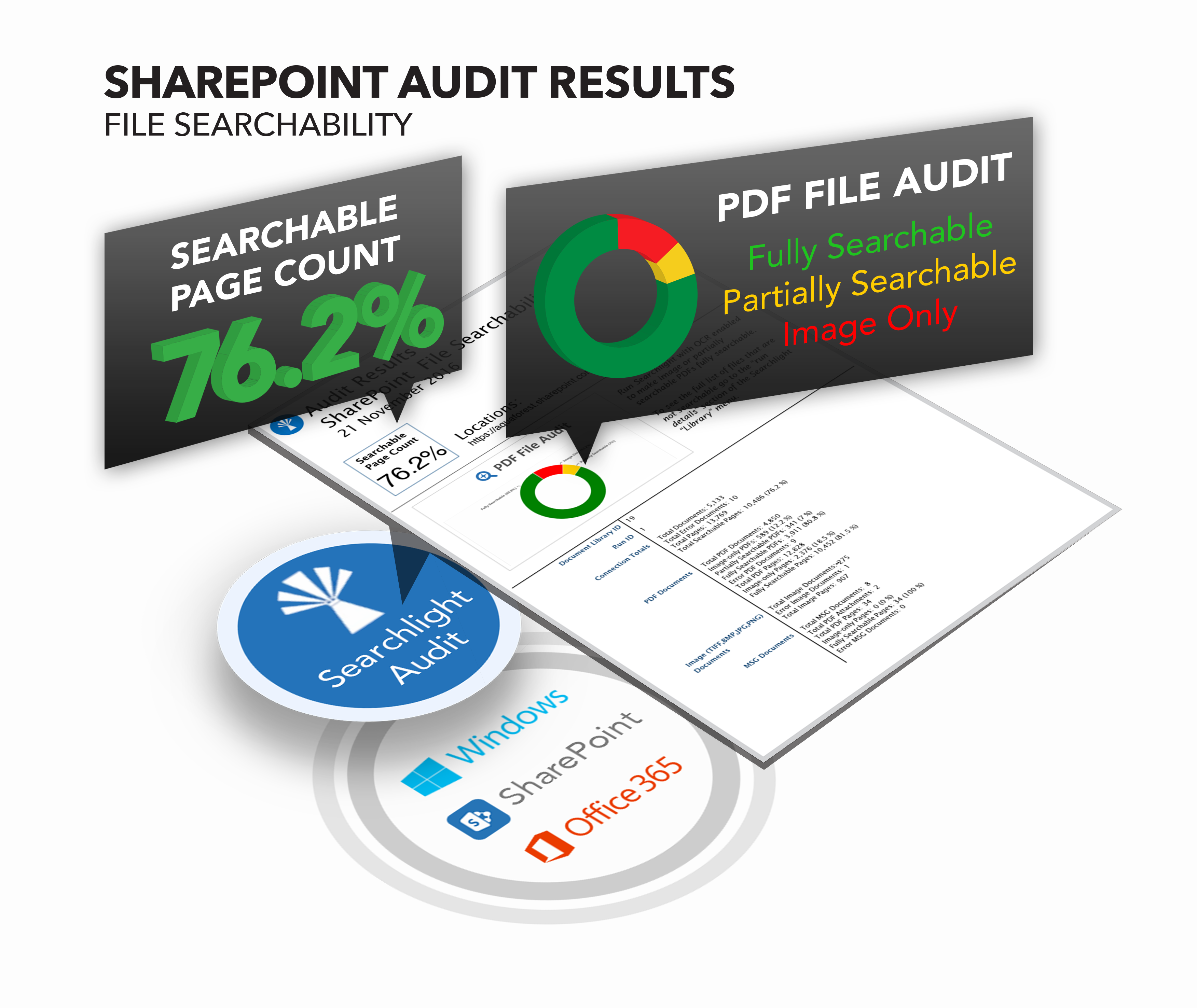 This is where Aquaforest Searchlight comes in. Aquaforest Searchlight is able to audit SharePoint document stores, identify image-only PDFs and turn them into searchable PDFs using Optical Character Recognition (OCR), thus allowing the SharePoint crawler to index them.