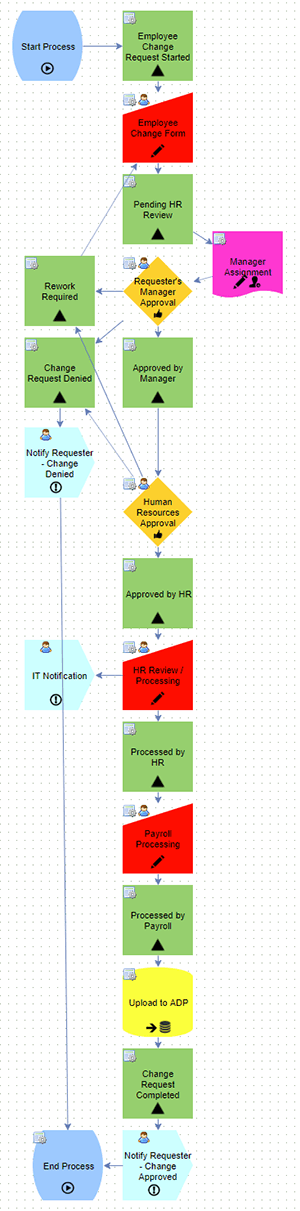 Our Use Case of the Month is the Employee Change Request(opens in a new tab) process. This template provides an efficient way for employees or HR staff to make requested changes to an employee’s records. In our already created process you can request a department change, location change, pay rate change, and/or title change. If you’d like to alter this process at all, the great thing about Nutrient Workflow is you can make any changes to this process or form to match your organization’s change request needs and start using it immediately!