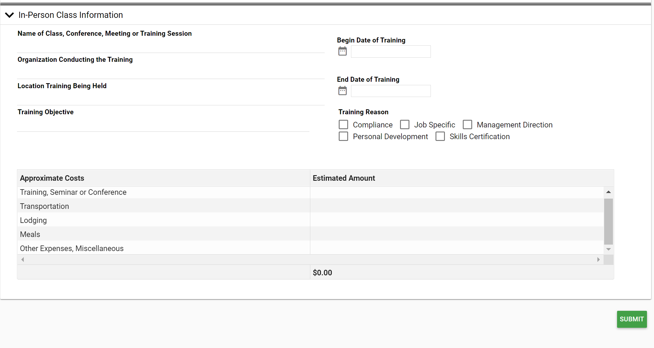 Training Request Process App