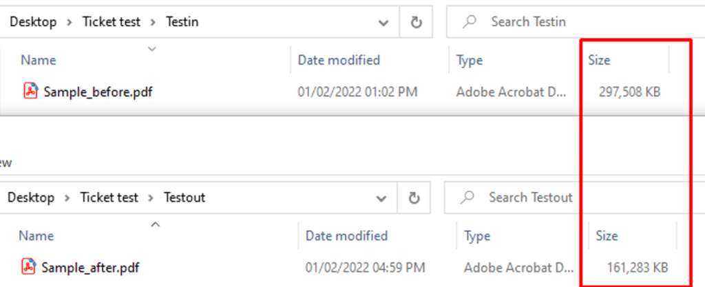 After running the job, I managed to save a large amount of space. Please see the comparison below.