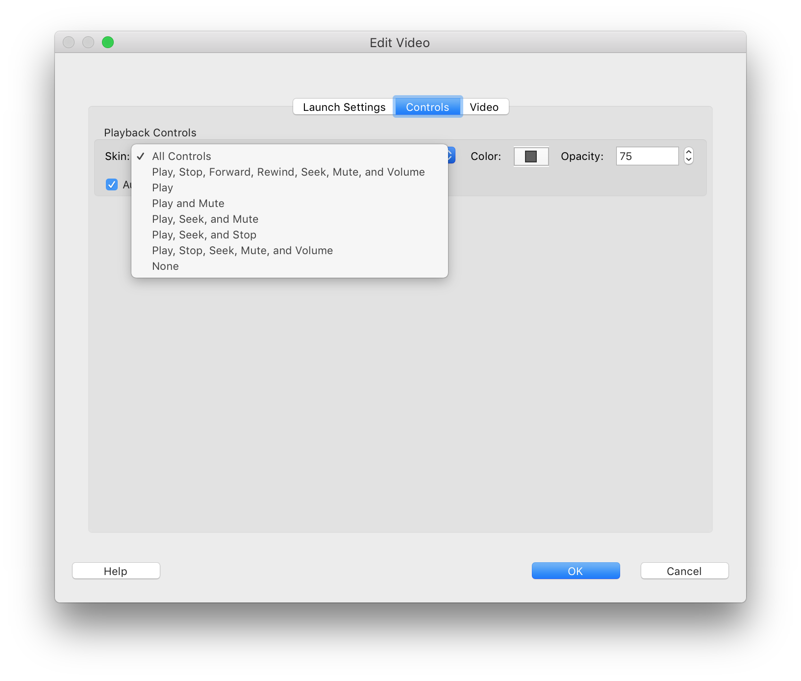 Showing/hiding video controls