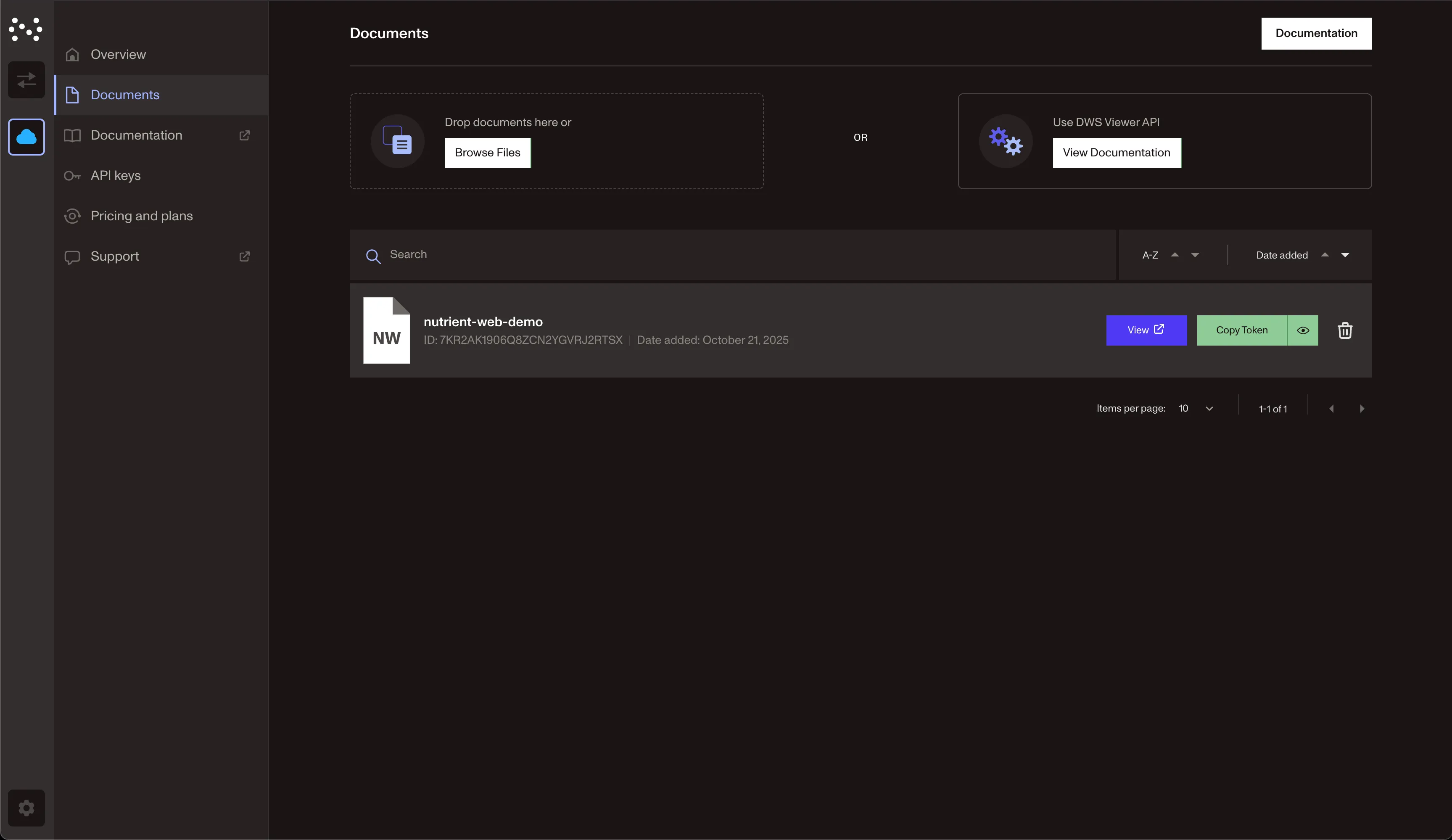 You’re now ready to integrate DWS Viewer API using Nutrient Web SDK. You’ll use the session token for this document from the Copy Token button and render it using Nutrient Web SDK.