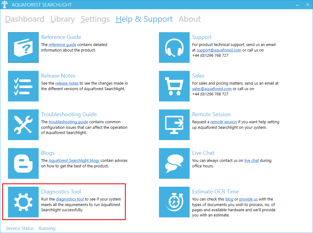 Once installed you can run the ‘Diagnostic Tool’ which can be accessed from the ‘Help & Support’ tab on the main screen.