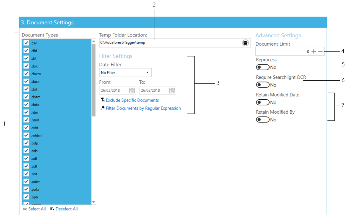- The Temp Folder Location is where Tagging temporarily stores downloaded files for processing. Once processing is completed for each document, it is deleted.