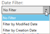 - Date Filter – Either by modified or creation date. Documents that fall within the specified range are included.