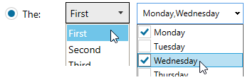 - Or, select whether you want to run the job on the first, second, third, fourth of a particular week day of the selected month(s).