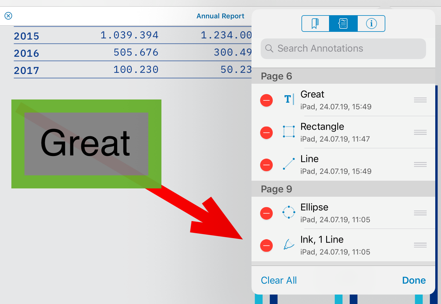 By default, when creating and adding new annotations, the new annotations will be added on top of existing annotations.